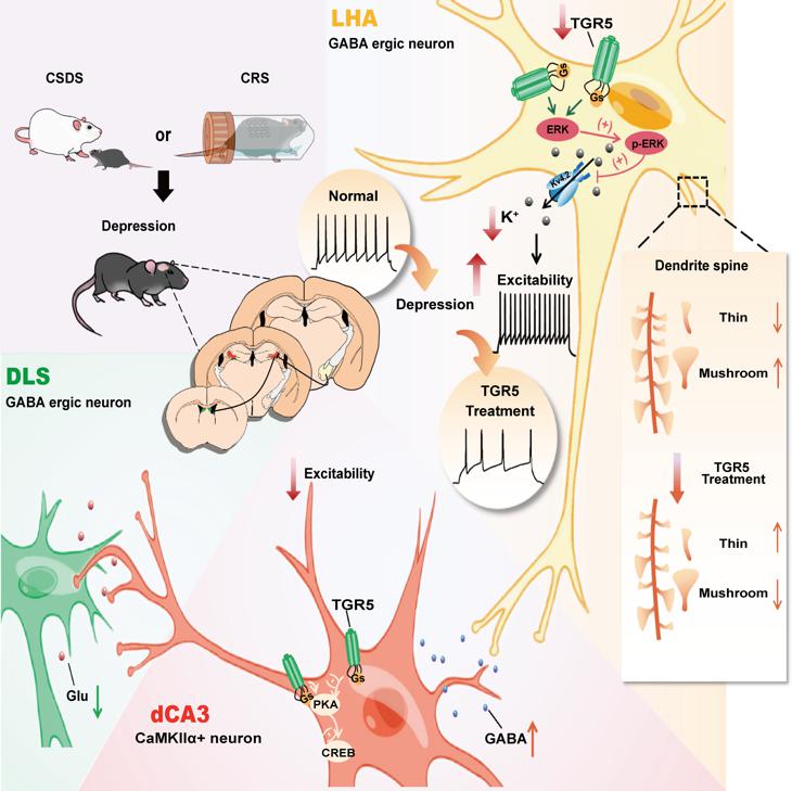 近日,权威期刊Neuron在线发表了我院洪浩/唐苏苏团队在抑郁症发病新机制及抗抑郁药物新靶点发现的最新研究成果:TGR5-mediated lateral hypothalamus-dCA3-dorsolateral septum circuit regulates depressive-like behavior in male mice。公司博士研究生李须逸和硕士研究生张诗雅为论文的共同第一作者,我院洪浩教授、浙江大学医公司附属精神卫生中心王浩研究员和公司唐苏苏副教授为共同通讯作者,伟德官方网站为论文第一通讯单位。