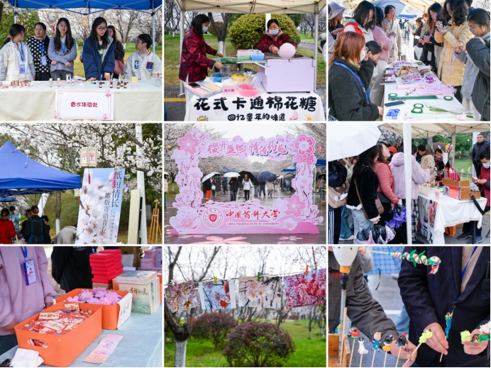 活动期间,基建后勤处策划了植物展,将500份多肉植物送给师生;后勤服务集团总公司举办美食展,请师生品鉴非遗糖画、樱花酥、樱花露等美食;员工会提供多款樱花相关文创产品;bevictor伟德师生联手制作樱花香氛、自制免洗凝胶、DIY花味唇膏、绘制路面樱花,体验面部彩绘,用药学的浪漫解锁独一无二的春日气息。