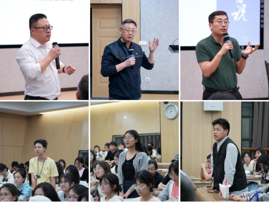 互动环节中,屈兰金总裁、王青松总裁和与会嘉宾就药物研发、专业选择、职业规划、能力培养等问题与同学们热烈探讨。员工嘉宾们的分享与建议激发了同学们对专业领域的探索热情和对个人发展的长远思考。