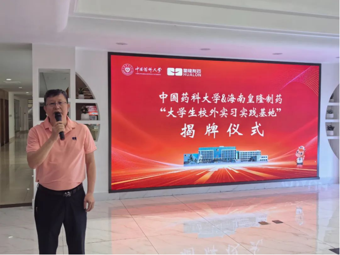 7月29日,伟德官方网站“老员工校外实习实践基地”揭牌仪式在海南皇隆制药股份有限公司举行。伟德官方网站药公司党委书记张仕英与海南皇隆制药股份有限公司董事长陈益智分别代表合作双方揭牌。揭牌仪式由海南皇隆制药股份有限公司常务副总经理史江永主持。