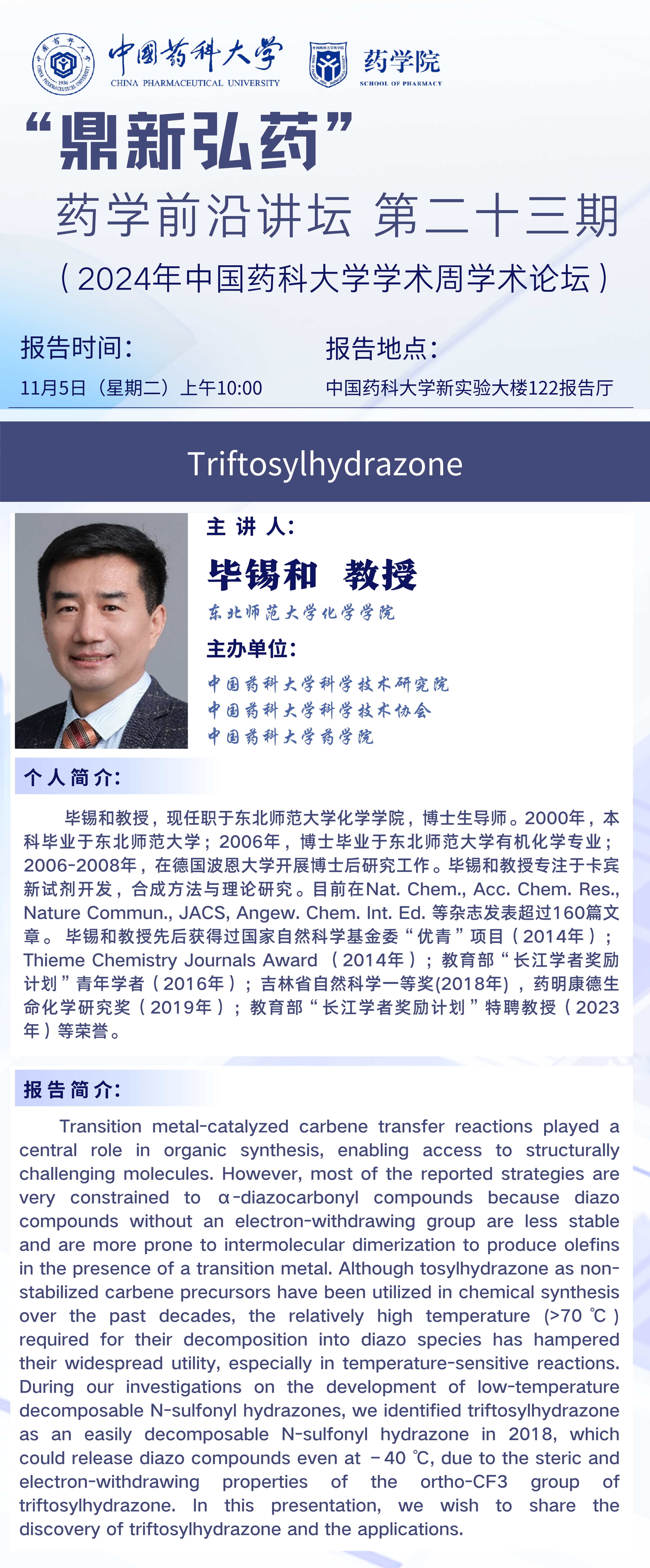 “鼎新弘药”药学前沿讲坛第二十三期通知