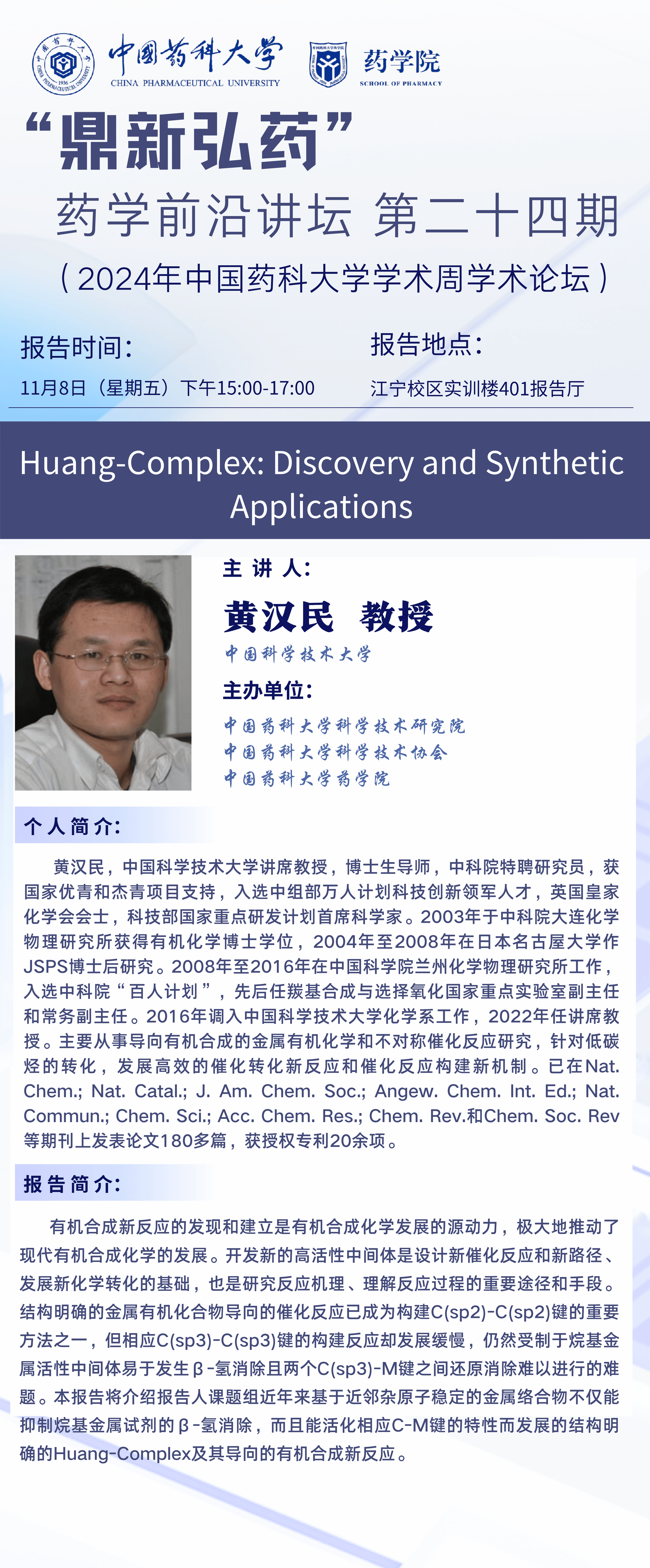 “鼎新弘药”药学前沿讲坛第二十四期通知