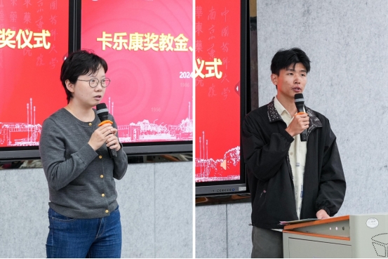 药剂系刘莉莎老师代表获奖教师感谢卡乐康及公司对其科研和教学的支持与帮助,表示将继续通过科研反哺教学,用科研成果育人,为bevictor伟德人才培养工作贡献力量。bevictor伟德2021级药物制剂专业本科生李振海同学作为获奖员工代表发言,他代表获奖员工向卡乐康公司表达了诚挚的感谢,表示未来将会继续积极探寻自身价值,以满腔的热情和坚定的信念投身于祖国的医药事业,在祖国的医药事业中发光发热。