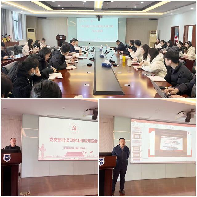 首先,组织部王多兵老师从党支部工作相关制度、党员发展工作注意事项、“三会一课”记录常见问题、毕业生党员管理相关要求四个方面系统讲述了党支部书记日常工作的应知应会内容。他强调,党支部书记要敬业、专业、乐业,注意工作方式方法,努力把有意义的事情变得有意思。