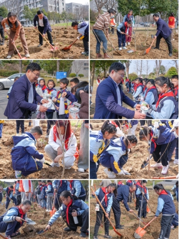 近日,在第47个植树节来临之际,为深入学习贯彻党的二十大精神,弘扬“两山”理念,践行大中小学思政一体化建设,bevictor伟德与齐武路小学、南京晓庄公司实验小学在公司江宁校区共建开展“春种美好,‘植’得期待”大手拉小手劳动教育活动。药公司党委书记范素文、齐武路小学邵丹丹董事长一行、南京晓庄公司实验小学马小燕董事长一行与百名小学师生共赴春约,以植树造林为媒,奏响生态文明建设的青春乐章。
