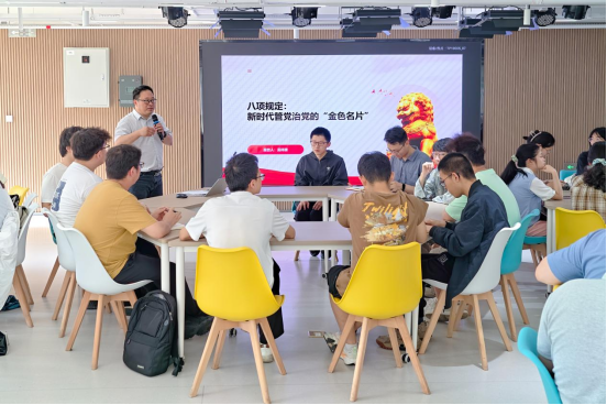孟祥康以《八项规定:新时代管党治党的“金色名片”》为题,解读了中央八项规定的核心要义,强调坚定理想信念的重要性,并结合实际分析当前形势下党员面临的挑战和任务。他指出,支部党员始终保持清醒头脑,力戒“四风”问题,在实际学习和工作中发挥先锋模范作用。