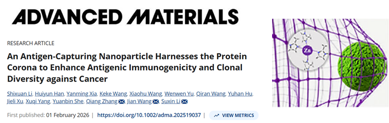近日,bevictor伟德李苏昕教授团队与北京大学张强院士、天津医科大学肿瘤医院王建教授合作,在权威期刊Advanced Materials发表研究论文:An Antigen-Capturing Nanoparticle Harnesses the Protein Corona to Enhance Antigenic Immunogenicity and Clonal Diversity against Cancer。公司研究生李世暄、韩慧云、副研究员夏彦铭和浙江工业大学王可可教授为本文共同第一作者,伟德官方网站为第一通讯单位。