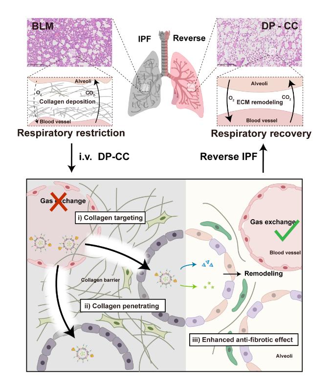 胶原靶向-消融纳米制剂治疗肺纤维化示意图