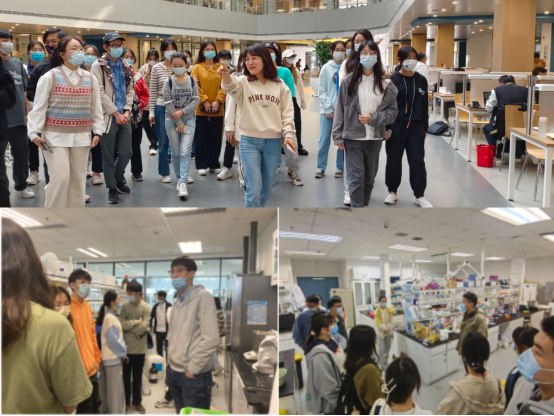 在实验室参观活动中,老师们带领同学们参观药物化学、药理学、药物代谢动力学、药物分析、药剂学实验室,并对团队力量、课题方向、研究进展、设备功能、安全知识等内容进行介绍,组织同学们近距离观摩常用仪器设备的使用与操作。在参观过程中,老师们悉心细致地向同学们介绍了公司各专业在新药研发与药品生产等方面扮演的不同重要角色。