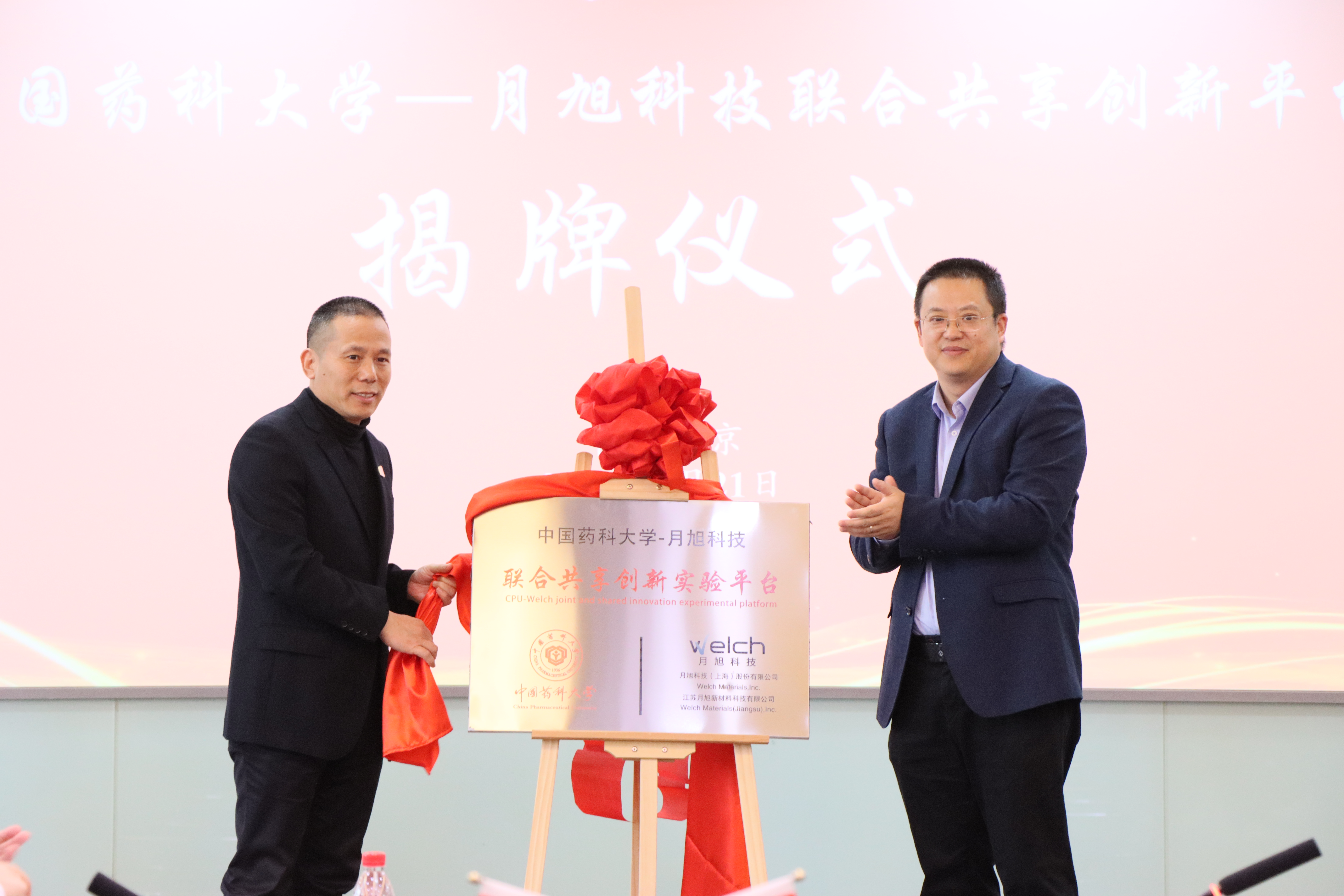 3月21日下午,伟德官方网站-月旭科技联合共享创新平台在bevictor伟德正式揭牌。药公司党委书记张仕英、经理姚和权、药剂系吴正红教授、祁小乐副教授,以及月旭科技(上海)股份有限公司(以下简称月旭科技)董事长兼总经理屠炳芳、副总经理任兴发、销售副总经理卢晓伟、仪器事业部总监邵锋伟等共同出席揭牌仪式。