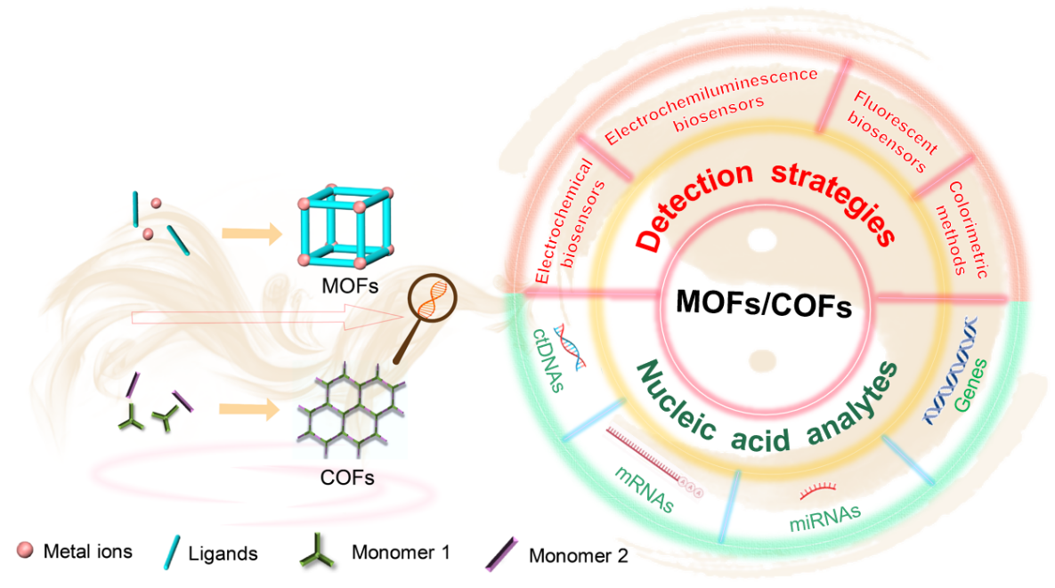 基于MOFs/COFs生物传感器的核酸检测示意图