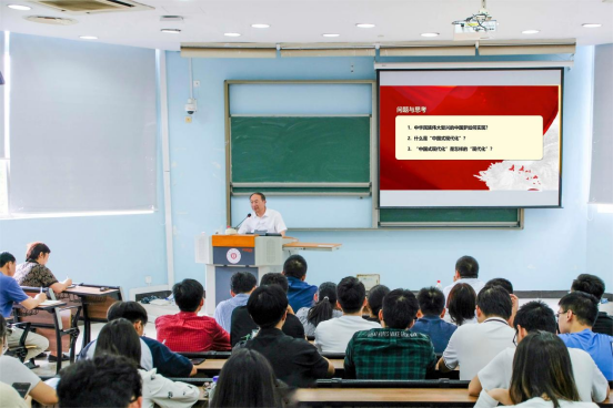 陆涛副董事长作题为《以中国式现代化全面推进中华民族伟大复兴》的专题党课,带领公司师生深入学习习近平新时代中国特色社会主义思想。陆涛副董事长以中华民族伟大复兴的中国梦如何实现、什么是“中国式现代化”、“中国式现代化”是怎样的“现代化”这三个问题开场引入党课主题,从“实现中华民族伟大复兴是中国共产党的历史使命”“中国式现代化是强国建设、民族复兴的唯一正确道路”“中国式现代化是中国共产党领导的社会主义现代化”“中国式现代化的中国特色、本质要求和重大原则”以及“推进中国式现代化需要正确处理一系列重大关系”五个方面,通过回溯历史,引用案例全方位阐述了中国共产党对现代化道路的百年探索、中国式现代化道路的科学内涵和本质特征、中国式现代化在推进中华民族伟大复兴进程中的作用。陆涛副董事长在党课中指出,推进中国式现代化是一个长期任务,还有许多未知领域有待探索,我们要进一步加强理论研究和实践创新,不断拓展中国式现代化的广度和深度,更好地推动强国建设、民族复兴,为人类作出新的更大贡献。