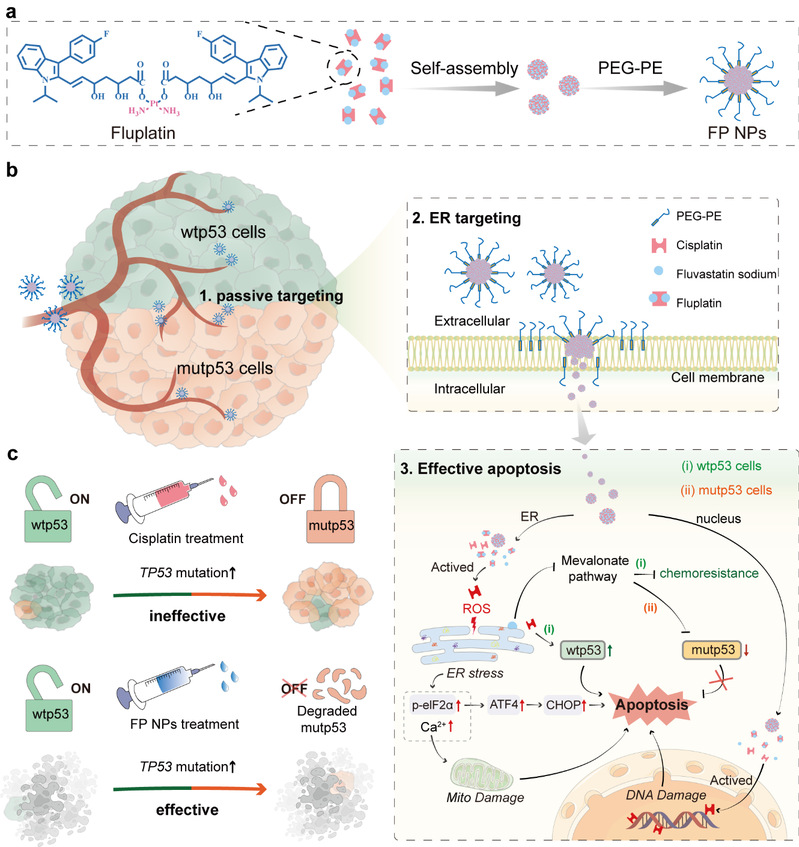 The group first assessed potential mechanisms of resistance to cisplatin-based progressive chemotherapy noting that increased TP53 mutations heighten cisplatin resistance. To address this, they synthesized Fluplatin, a compound combining cisplatin and fluvastatin, and formulated FP nanoparticles (NPs). These nanoparticles are unaffected by p53 mutations, target the endoplasmic reticulum, degrade mutant p53, and induce endoplasmic reticulum stress, thus exerting potent antitumor effects independently of the p53 pathway. FP NPs slows tumor progression and holds promise for improving the poor prognosis in cases with p53 mutations.