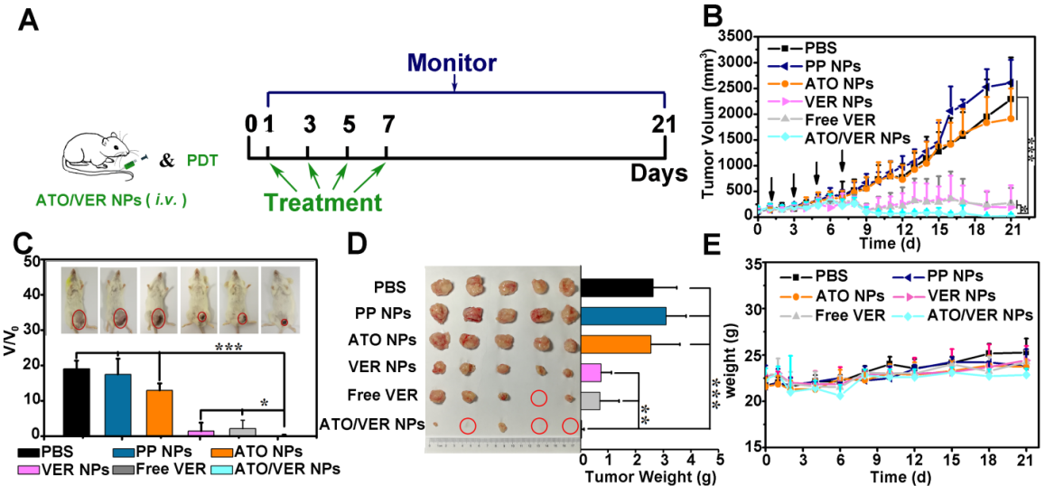 (1) Oxygen plays an important role in photodynamic therapy (PDT) for tumor. However, hypoxia within the tumor severely impaired the therapeutic effect of PDT. To solve this problem, a sub-50 nm dual-loaded nanoparticle was designed and prepared to improve PDT efficiency by cutting off the oxygen consumption pathway. This work is different from the traditional direct oxygen delivery strategy, and the indirect suppression of tumor oxygen consumption strategy was used in anti-tumor sensitization therapy, which opens up a new method of photodynamic therapy.