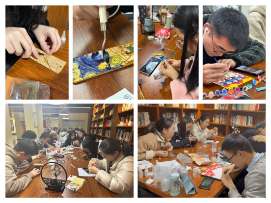 集体学习后,支部副书记李鑫为大家介绍了非遗缠花、掐丝珐琅画、脸谱彩绘的发展历史,制作手艺等,带领全体成员亲自体验非遗手工,近距离感受非遗的制作过程。最终,通过支部各成员的努力,成功制作系列手工作品,大家深刻领略了非遗之美,进一步加深了对非遗工艺的理解。