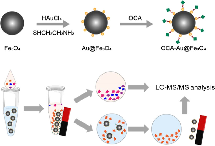 药物靶标是指能与药物结合,并实现药效功能的生物大分子。研究发现药物与药物靶标并不是一一对应的关系,一种药物可能存在多个靶标。仍有许多药物靶标未知是产生脱靶效应和耐药性的主要原因之一。因此,寻找准确有效的筛选新靶标的方法是药物研发中至关重要的环节。近年来,化学蛋白质组学作为一种高通量、高准确度、高灵敏度、低成本的蛋白质筛选手段,正逐渐取代传统的方法,如同位素示踪法和二维凝胶电泳法,广泛应用于药物靶标的寻找过程中。但使用传统材料如琼脂糖、磁珠和葡聚糖凝胶作为固相基质的化学蛋白质组学在识别药物靶标时普遍存在分离速度慢、效率低、操作复杂的缺点。