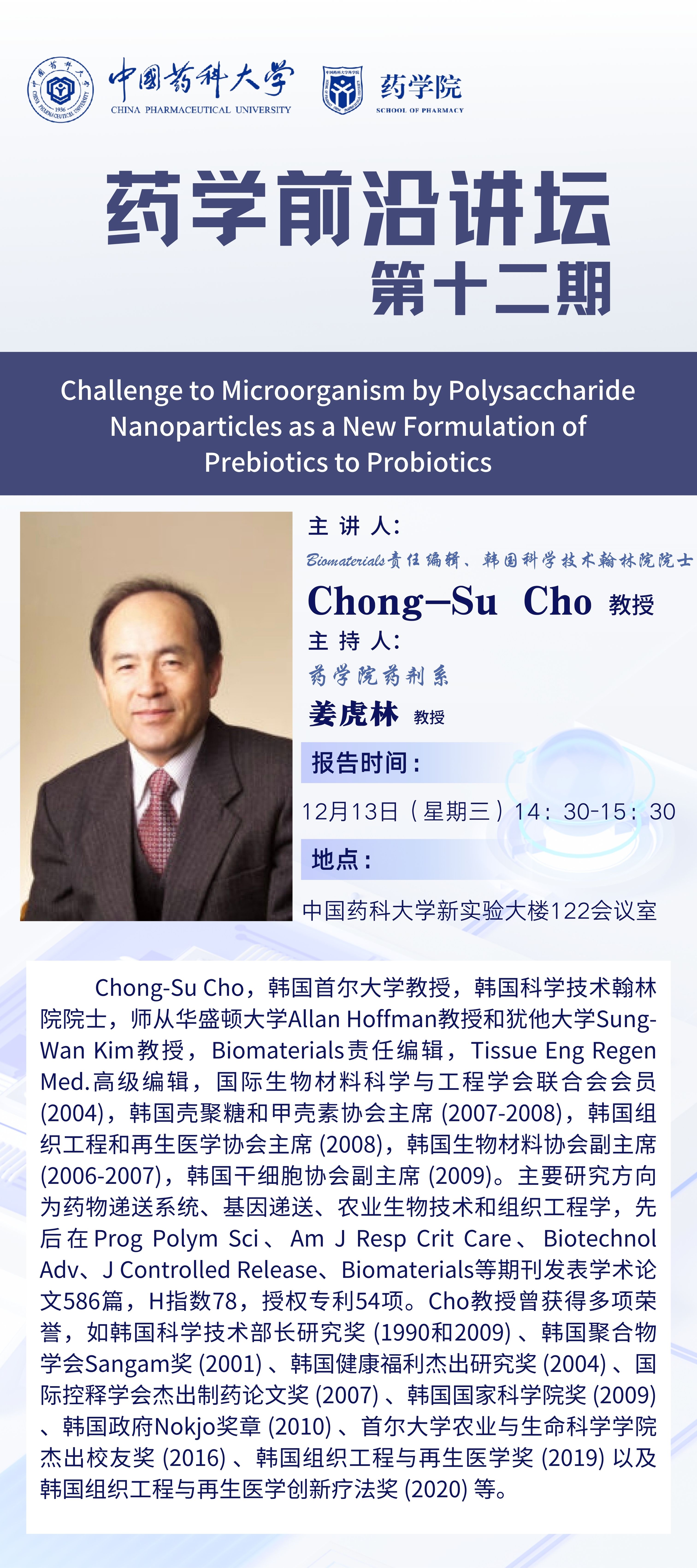 bevictor伟德第十二期药学前沿讲坛通知